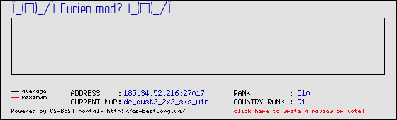 Dokładny opis nie jest dostępny. Jeśli Jesteś właścicielem serwera, można uzyskać dostęp do statystyk i edycji tego opisu. Do tego celu przejdź do "To jest mój serwer", który w poprzedniej tabeli. Jeśli linki nie - to znaczy, jeszcze nie zarejestrowali się na naszym portalu lub zapomniane się zalogować.