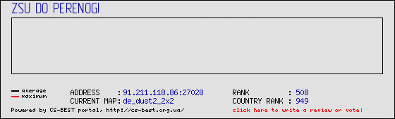 Serwer znajduje się lub znajdował się w MasterServers. Po raz pierwszy został zauważony , ostatni raz (aktualizacja informacji z MS codzienne).