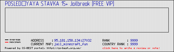 Serwer znajduje się lub znajdował się w MasterServers. Po raz pierwszy został zauważony , ostatni raz (aktualizacja informacji z MS codzienne).
