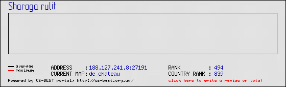 Dokładny opis nie jest dostępny. Jeśli Jesteś właścicielem serwera, można uzyskać dostęp do statystyk i edycji tego opisu. Do tego celu przejdź do "To jest mój serwer", który w poprzedniej tabeli. Jeśli linki nie - to znaczy, jeszcze nie zarejestrowali się na naszym portalu lub zapomniane się zalogować.