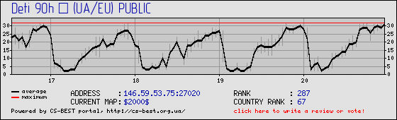Serwer znajduje się lub znajdował się w MasterServers. Po raz pierwszy został zauważony , ostatni raz (aktualizacja informacji z MS codzienne).