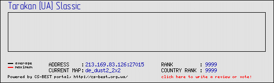 Serwer znajduje się lub znajdował się w MasterServers. Po raz pierwszy został zauważony , ostatni raz (aktualizacja informacji z MS codzienne).
